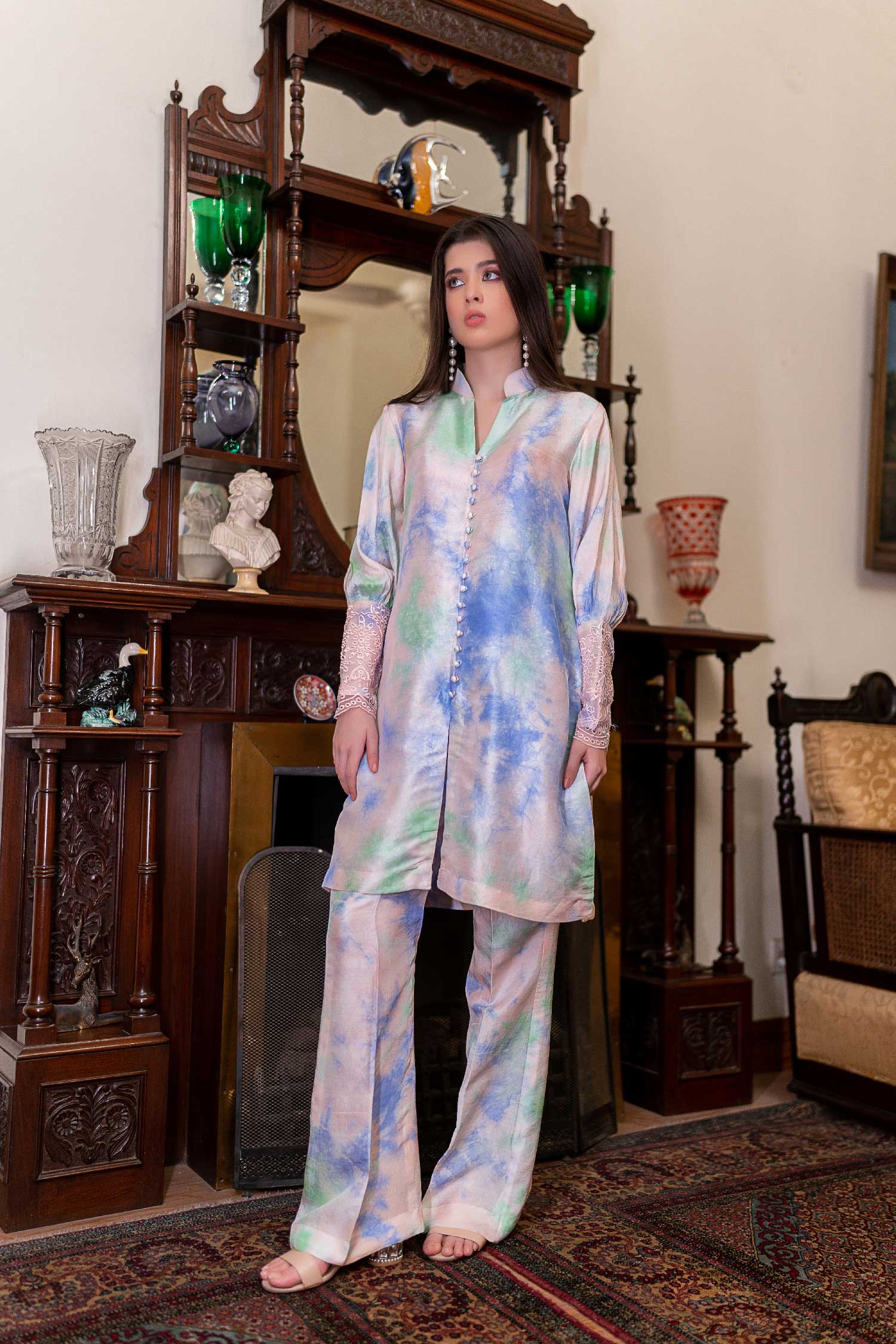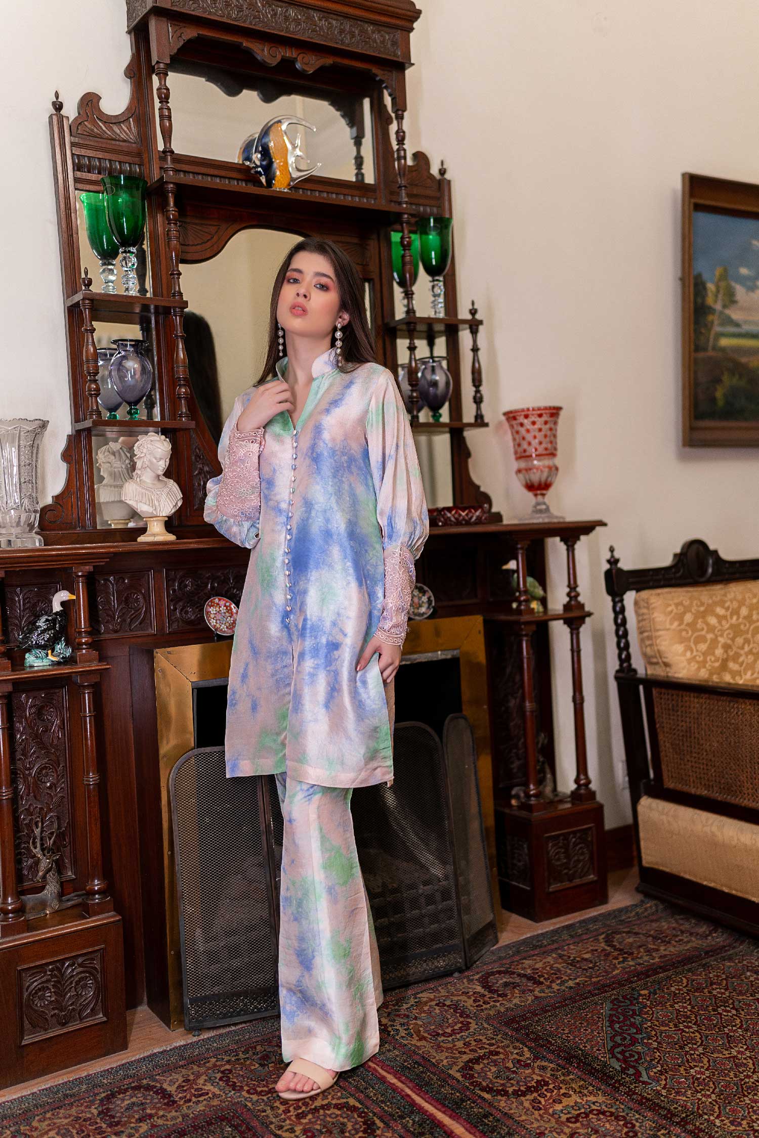 - Our tie & die set is consist of Pure 80grm Rawsilk with loops button on front slit embroidered organza cuffs on the sleeves.