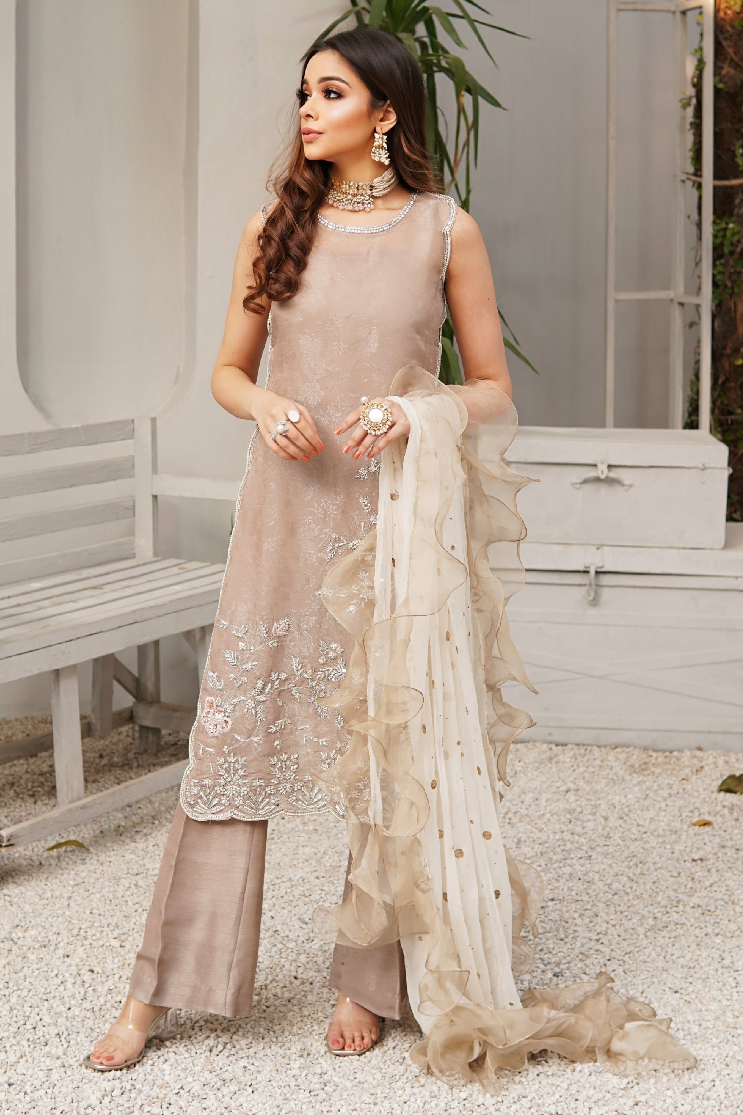 - Chiffon Mukesh Dupatta with Organza Frill 4 sides