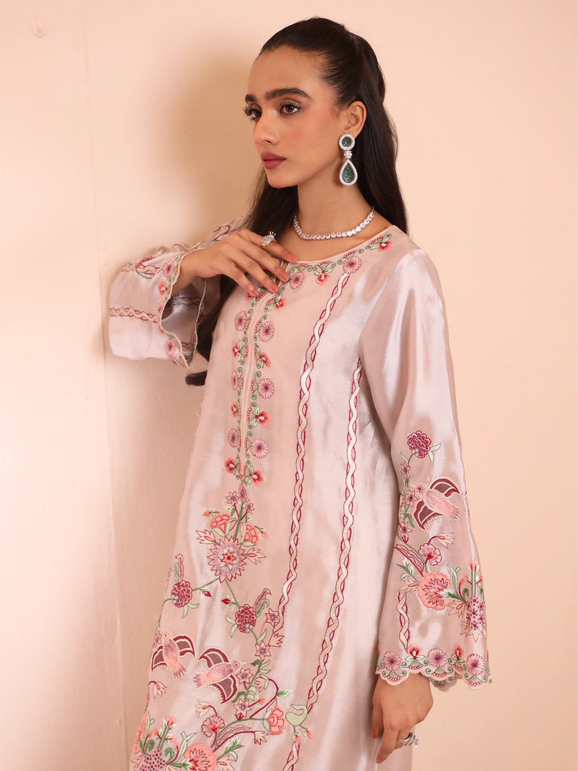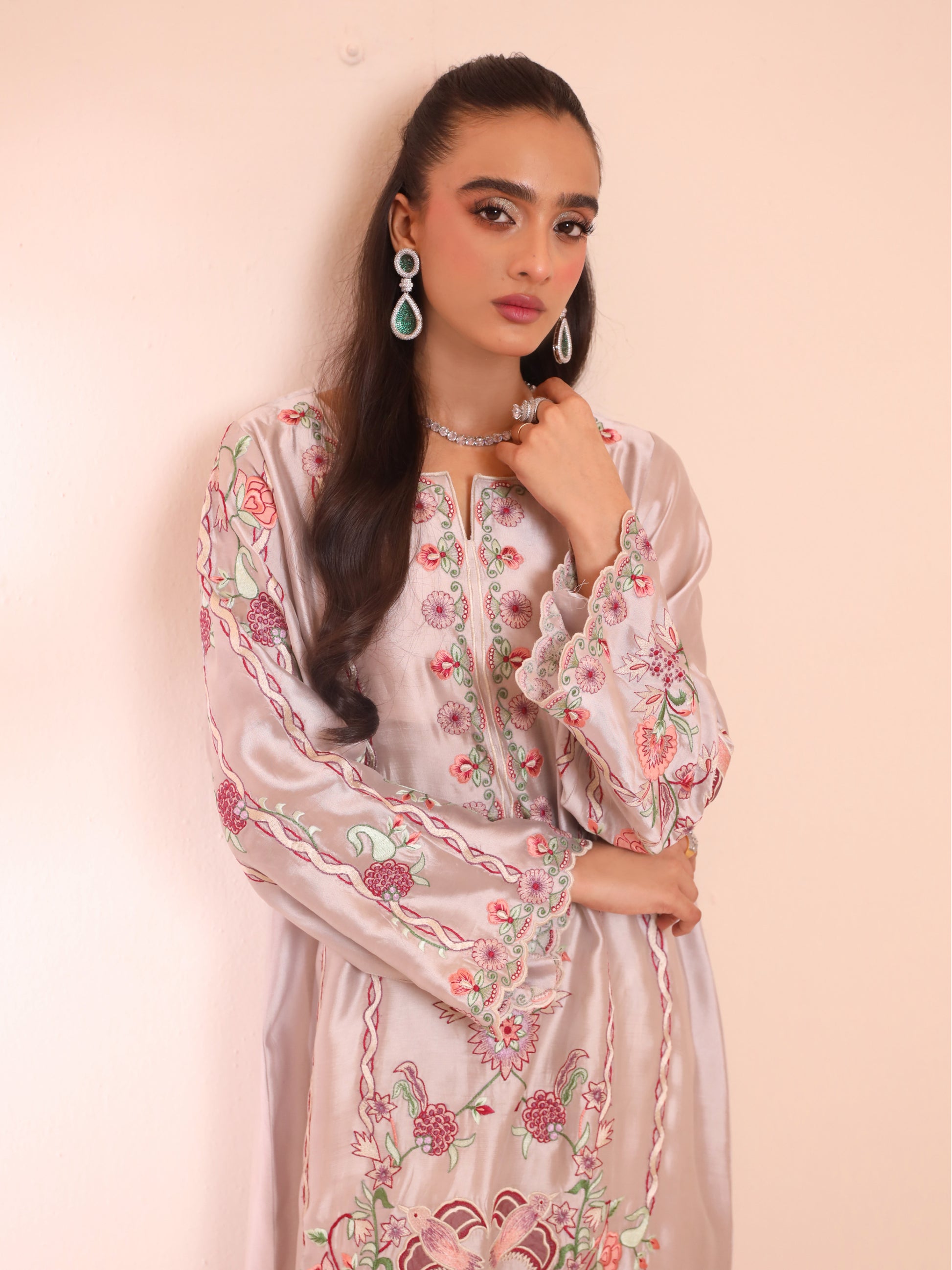 -Multi Resham embroidery appliqué with mirror and cutwork