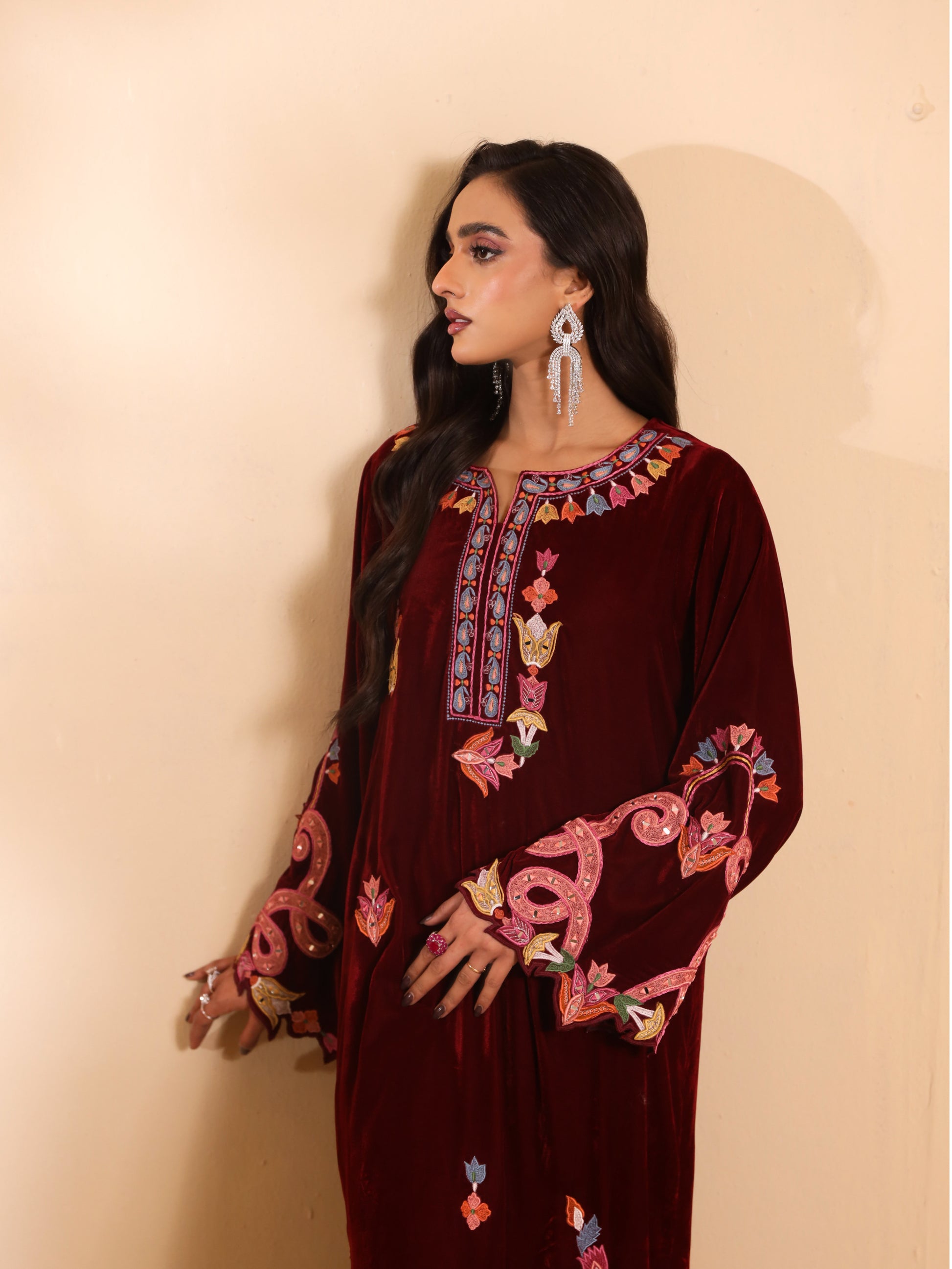 -Multi Resham embroidery appliqué with mirror and cutwork